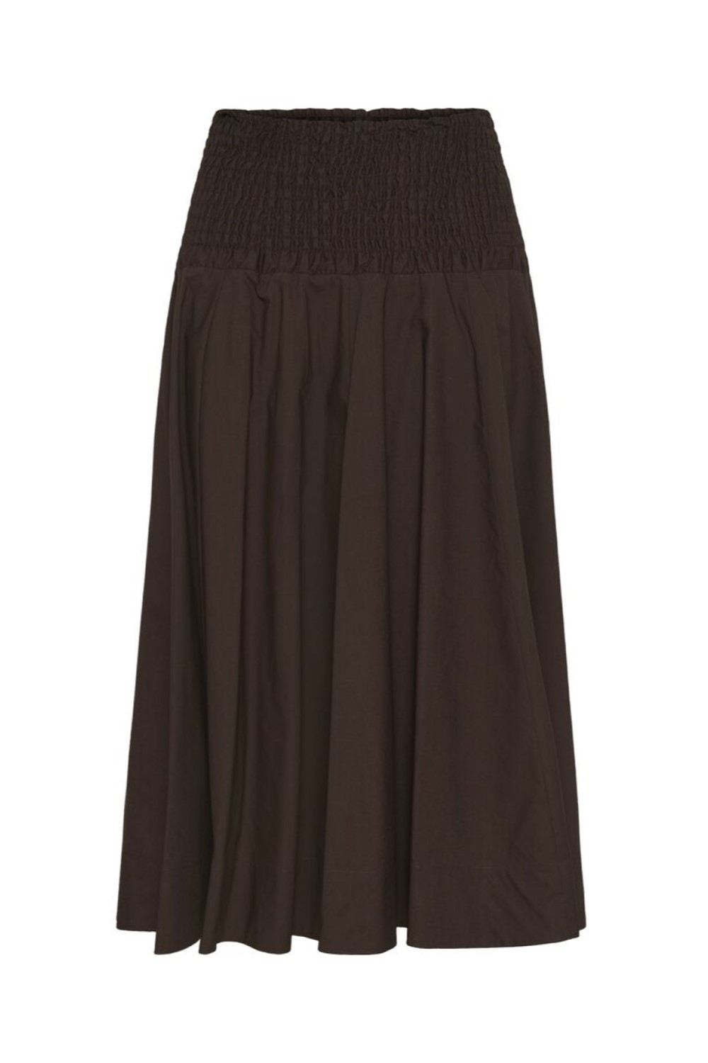 Cotton A-line skirt with deep elasticated waistband for a comfortable and flattering fit.