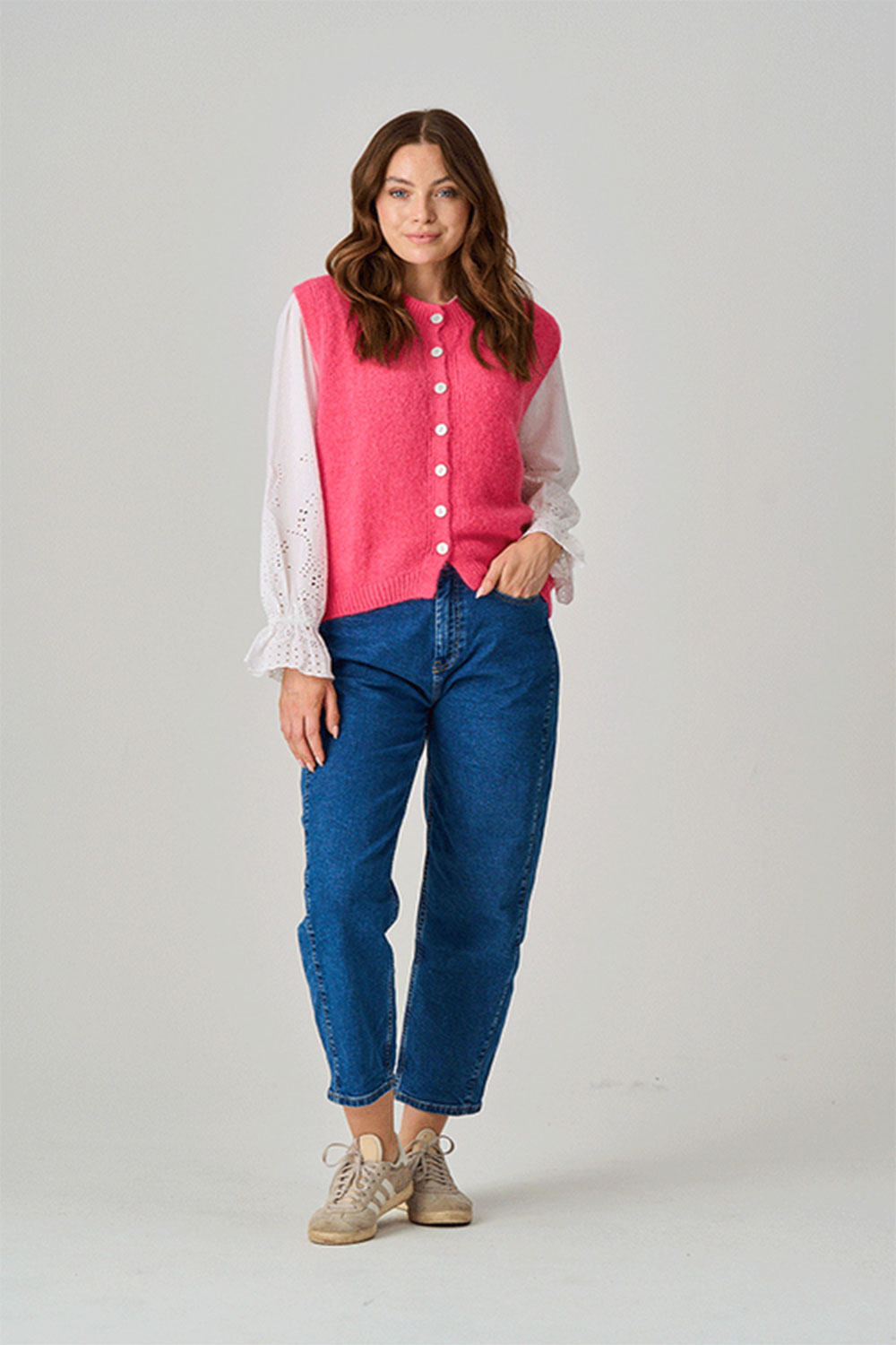 Oaksey Alpaca Button Tank brings warmth and colour to your wardrobe. Made from a luxurious alpaca blend structured shape. This piece works just as well layered over shirts and dresses as it does worn on its own. A versatile knit with character and comfort in equal measure.