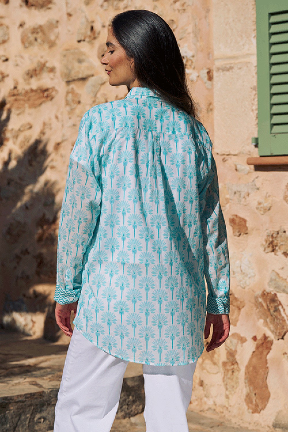 The Biarritz Cotton Shirt is crafted from breathable cotton for effortless everyday wear. Finished with a delicate palm print and contrast cuffs. This boyfriend fit is slightly longer and bigger than the regular Luella shirts.