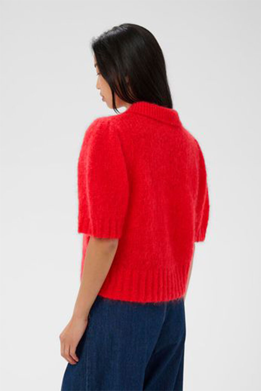 Short sleeve cardigan with a soft textured finish, classic point collar and front button closure.