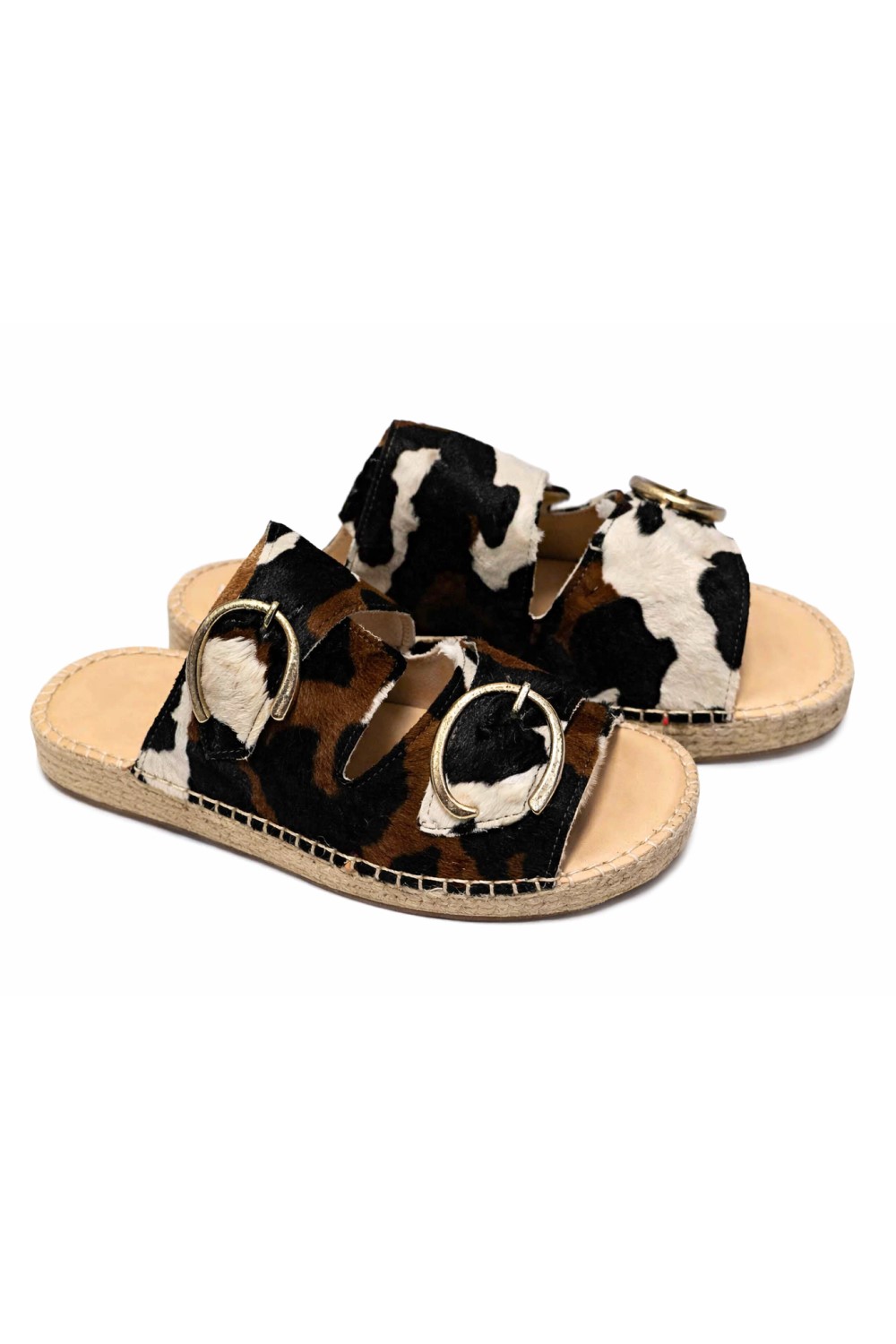 Beautifully made in animal-print hair-on leather, these Bety espadrilles stand out for their modern design and large side buckles, which adds character and contrast.